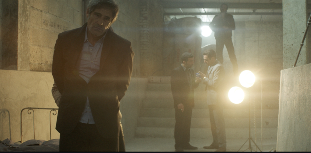 d’architecte, œuvre de Mallet-Stevens, comme cadre à cet affrontement. « La maison fait 1000 mètres carrés, dit le réalisateur, ce qui est un terrain de jeu idéal pour un huis clos. Cela permet d’être en longues focales, de pouvoir changer souvent de pièces, de ne pas être confiné dans un seul décor, de sentir l’espace autour de soi et de l’utiliser différemment en fonction des séquences. » Un tel cadre permet de rendre encore plus étouffantes les scènes de tension, voire de violence pure, entre Carré et ses ravisseurs ou de faire « respirer » le spectateur. Ainsi dans la belle séquence aérienne où la caméra saisit Kancel en plein réflexion sur la terrasse supérieur de l’édifice.