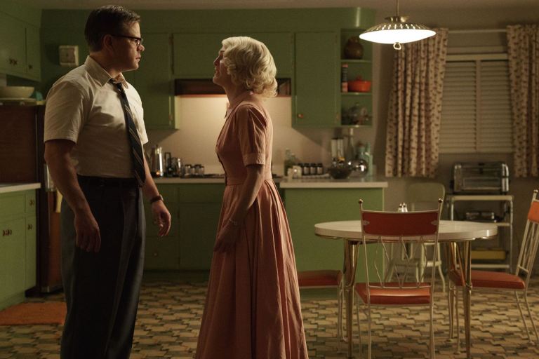 Bienvenue à Suburbicon est une comédie noire dans l’Amérique des années 50 : l’histoire d’un père de famille qui engage deux baltringues tuer son épouse dans le seul dessein de toucher son assurance-vie et de recommencer sa vie avec la jumelle de sa femme. L’action se passe donc au cours de la décennie qui suit la Seconde Guerre mondiale, quinze ans après l’instauration du G.I. Bill. Par cette loi, les soldats mobilisés durant le conflit pouvaient trouver le financement de leurs études universitaires ou de leurs formations professionnelles et elle aidait aussi l’accès à un logement grâce à plusieurs types de prêts. Une conséquence directe de la loi fut de permettre aux anciens soldats issus des minorités d’avoir accès aux banlieues, autrefois réservées aux personnes aisées et blanches. Ce qui n’empêchait