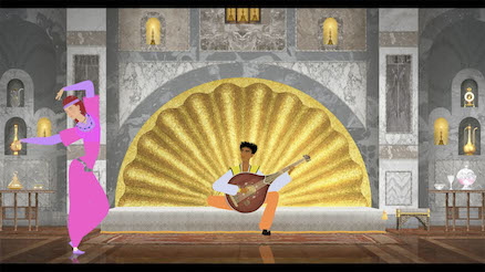 Liant les trois récits par la présence de la conteuse, qui raconte selon un thème choisi par son auditoire, ce nouveau film d’animation ,conçu en pleine pandémie avec un certain nombre de difficultés liées à la distance, séduit par la beauté des images et le contraste par exemple entre la magnificence orientaliste de La Princesse des roses et le Prince des beignets et l’univers plus sombre avec ses silhouettes sombres du Beau Sauvage. Sans oublier le premier conte qui retrouve l’image « à plat » de l’esthétique égyptienne. Ayant confié à des équipes différentes le soin d’animer chaque conte, Michel Ocelot obtient là une grande variété de sa palette de couleurs.