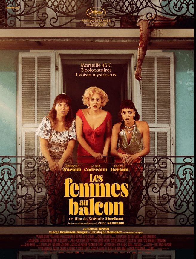 Deuxième film de Noémie Merlant après Mi iubita, mon amour en 2021, Les Femmes au balcon met un humour des plus noirs et un ton des plus cash au service d’une comédie déjantée dénonçant les violences faites aux femmes. Dès le premier plan séquence en forme de plongée dans un quotidien du centre ville de Marseille, plombé par la chaleur, le ton est donné et on sait que les machos de tout poil vont en prendre pour leur grade… Sur fond de violences faites aux femmes, la réalisatrice-actrice joue dans son récit sur plusieurs genres – de la comédie au fantastique -, ce qui peut déstabiliser un peu le spectateur.