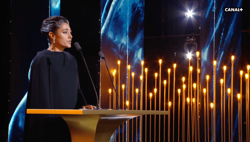 Golshifteh Farahani a signé la séquence émotion en évoquant la terrible répression dont est frappé le peuple iranien. « Les survivants dansent pour que les bourreaux sachent qu’on peut tuer les corps mais jamais les âmes.«