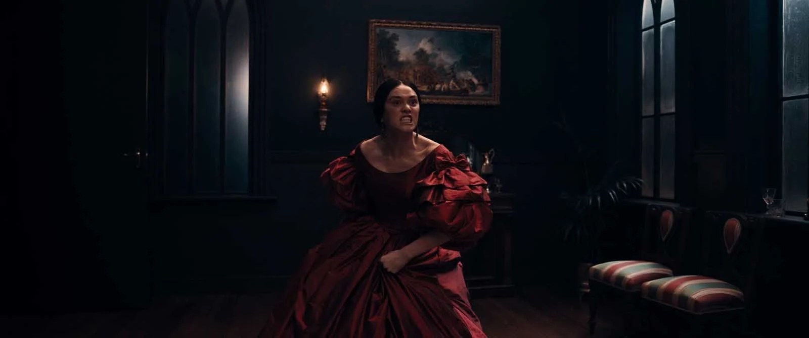 Derrière une histoire qui bascule vers une horreur gothique, il y a donc un regard sur les ravages de la colonisation et ses violences envers les populations autochtones, les femmes notamment les « proies » les plus faciles. Très vite, derrière le vernis d’une apparence chaleureuse et d’un certain luxe aristocratique, le manoir Hawkser cache de sombres histoires et se révèle hanté par un passé sanglant.